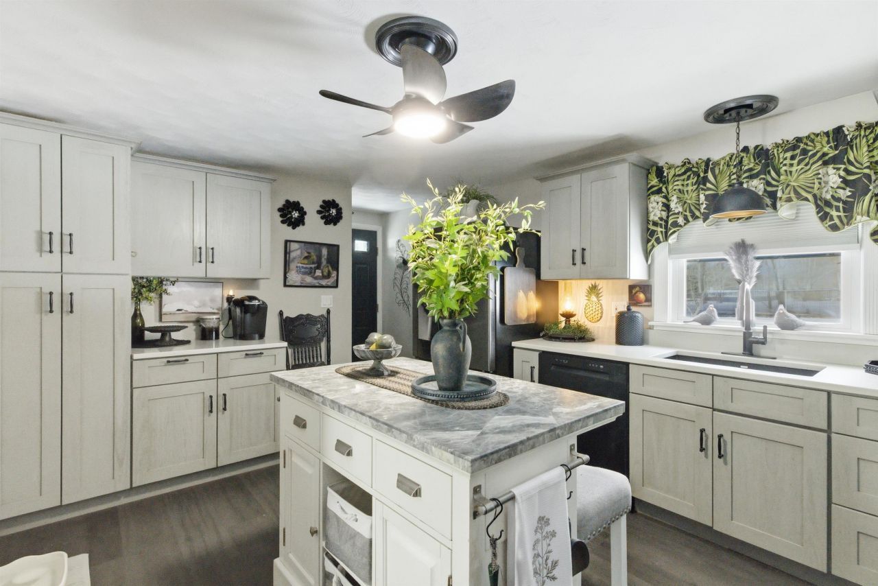 Charming Three-Bedroom 1.5 bath home on .36 with a fenced backyard and one car under garage. Discover the perfect blend of comfort and convenience here making it an ideal choice! Most renovations have been done within the past two years. The heart of the home is the brand-new renovated kitchen, new soft close doors and drawers, quartz countertops, appliances and flooring. Full bath renovated, new 1/2 bath and laundry room on the first floor. Three spacious bedrooms with plenty of closet space, new carpet and new vinyl plank flooring. New buyer has the opportunity to make the family room in the basement exactly what they want, has a woodstove hearth and does need flooring but bring your vision! Additional feature is an enclosed porch/breezeway entrance. Nice backyard where you can savor breathtaking sunsets amidst established blueberry and raspberry plants. Additional features include a one-car garage under the home, a partially fenced yard, and a convenient shed for extra storage. The property's location ensures proximity to downtown amenities and the very popular Franklin Falls Dam with its trails for mountain biking and walking, as well as a competitive disc golf course and excellent commuter location with I93 N/S within minutes away from the home. This home is not just move-in ready; it's clean and eagerly awaits its new owners. Don't miss the chance to make this yours?schedule your move today and embark on a new chapter of comfort and tranquility. This sale is contingent upon seller finding suitable housing.