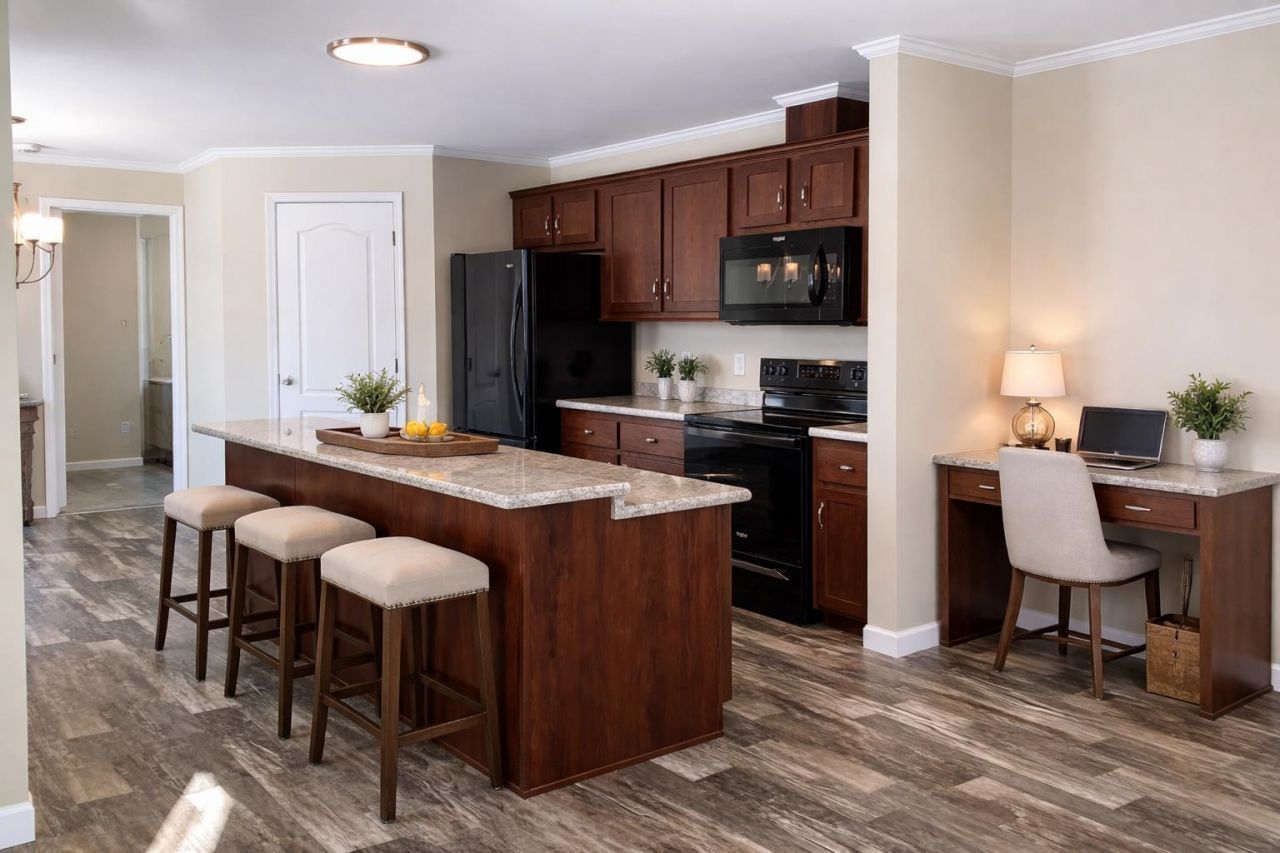 Immaculate and move-in ready 2020 Titan manufactured home offering a bright, open-concept layout designed for comfortable living. The spacious kitchen is a standout, featuring a center island with breakfast bar seating, stainless steel double sink, and plenty of workspace for everyday cooking and entertaining. There is ample room for a dining table, creating a welcoming eat-in kitchen area. A dedicated laundry room just off the kitchen adds convenience rarely found in homes of this type. The living room flows seamlessly from the kitchen, with partial walls providing subtle separation while maintaining an open feel. Durable laminate flooring runs throughout the main living spaces. The primary bedroom includes a double closet and a private bath with double bowl sink. Quality features include 2x6 construction, crown molding, recessed and natural lighting, wide window sills, and dimmer switches throughout. Additional, enjoy a setting that backs up to nature and wildlife. Sale includes the use of a park-owned 10x12 storage shed. Conveniently located just minutes to Keene and a short drive to the Massachusetts border, Colonial Gardens Mobile Home Park offers affordable living ideal for year-round residents or seasonal owners alike. * Please note some interior photos are virtually staged.