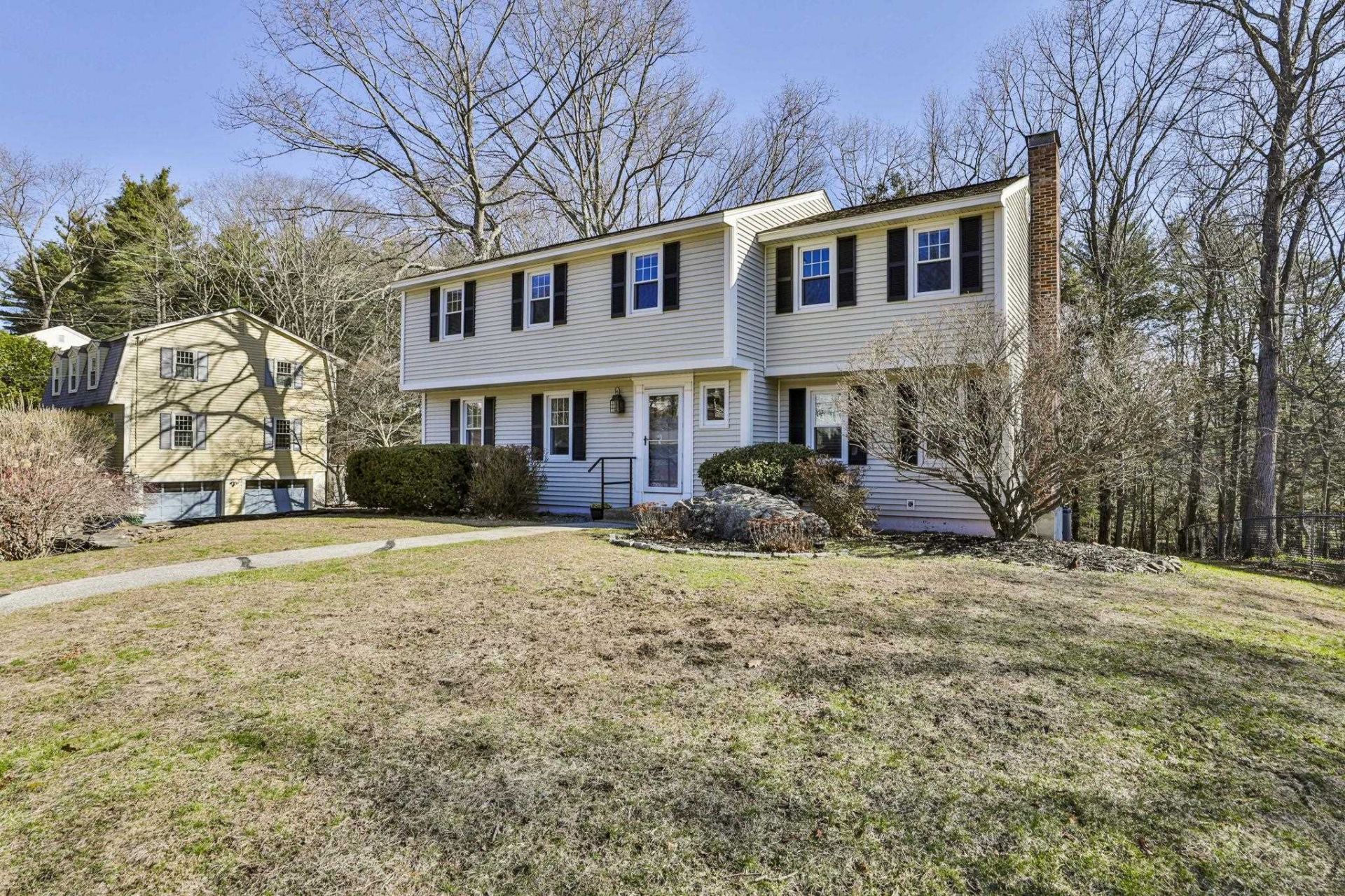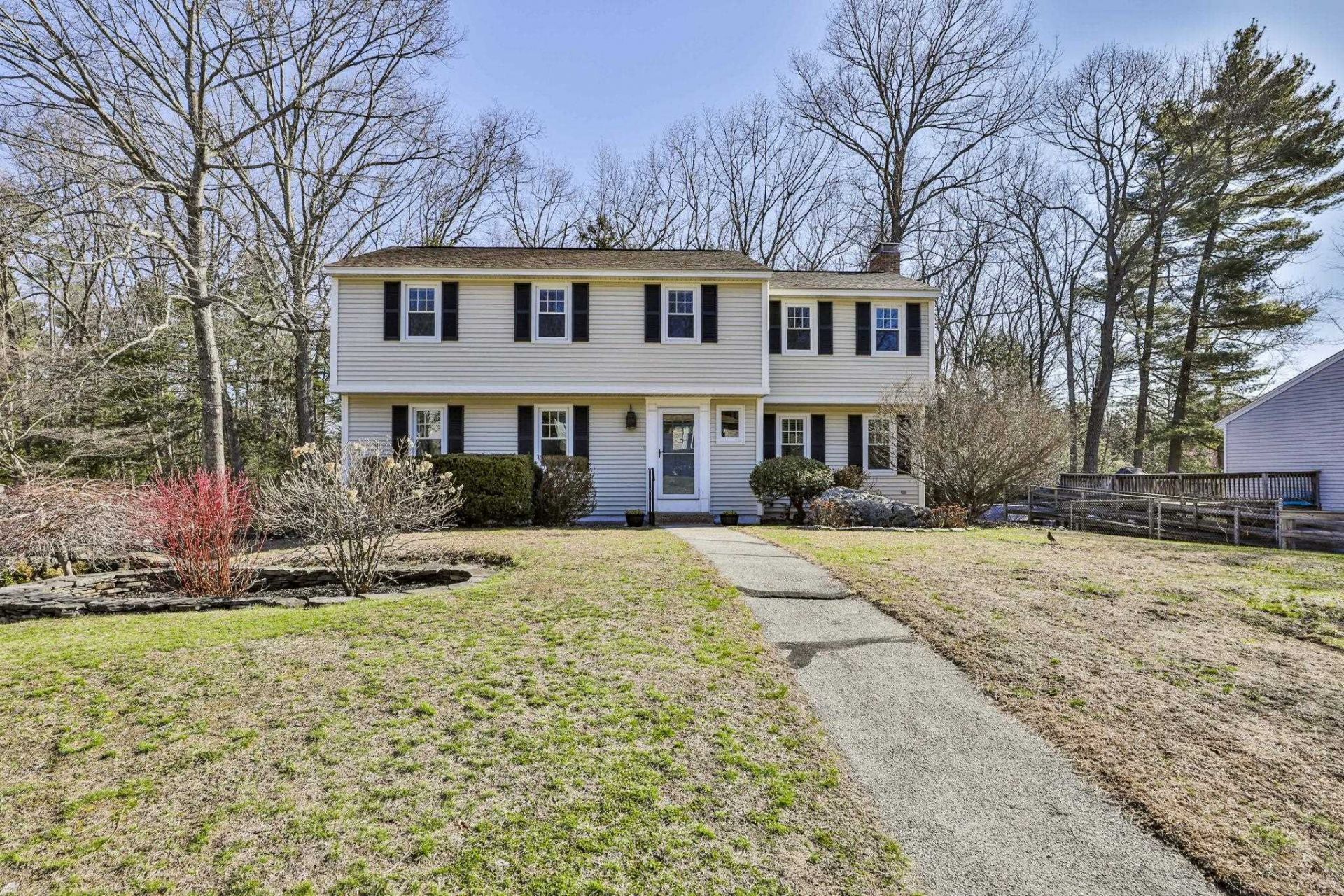 Gorgeous Colonial set in a desirable country setting, abutting 3.47 acres of open space with exceptional curb appeal. Built in 1978, this well-maintained home offers 4 bedrooms, 3 baths, central air, generator hookup, and a 2-car garage. The inviting layout features a tucked-away staircase, spacious living room with recessed lighting, formal dining room with pocket door to the kitchen, and a functional kitchen with pantry. The first floor also includes a half bath with laundry (washer and dryer included) and a warm, inviting family room with wood-burning fireplace and direct access to a large deck overlooking the backyard. Upstairs you will find a generous primary suite with double closets and updated bath, along with three additional well-sized bedrooms and a full main bath. The unfinished basement provides ample storage and includes access to the garage and exterior. Conveniently located with easy access to Route 3 via Exit 6 and situated in the Birch Hill Elementary, Pennichuck Middle, and Nashua North school districts. Close to the Hollis, NH border. Quick close available.