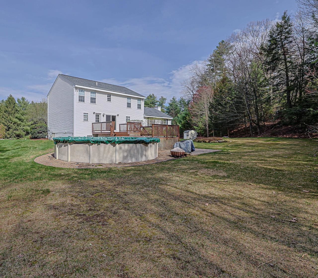 Welcome to Olympic Village, beautifully set on 53 acres of scenic land with walking trails and open common space surrounding 72 homes. This meticulously maintained 4-bedroom Colonial sits on a premium cul-de-sac lot, offering both privacy and charm. The updated kitchen features rich cherry cabinetry, designer countertops, and red oak flooring, creating a warm and inviting space for everyday living and entertaining. The home has seen numerous recent upgrades, including a striking new front entry door, storm door, back door, sliding doors, and updated garage doors with new motors. Step outside from the breakfast nook onto a custom deck that leads to a brand-new, family-sized pool and patio?perfect for enjoying summer days. Additional updates include new carpeting, and refinished oak flooring. All three bathrooms have been fully renovated with modern finishes and updated flooring. The kitchen opens to a spacious family room centered around a masonry fireplace with a gas insert, creating a cozy gathering space. The lower level offers a large recreation room along with a separate private office?ideal for remote work or guests. Conveniently located near shopping, outlet centers, and nature parks, with just an 8-minute drive to the golf course and quick access to the Everett Turnpike. Open House: Saturday 4/25 from 12:00-2:00 PM Sunday from 12:00-1:30 PM
