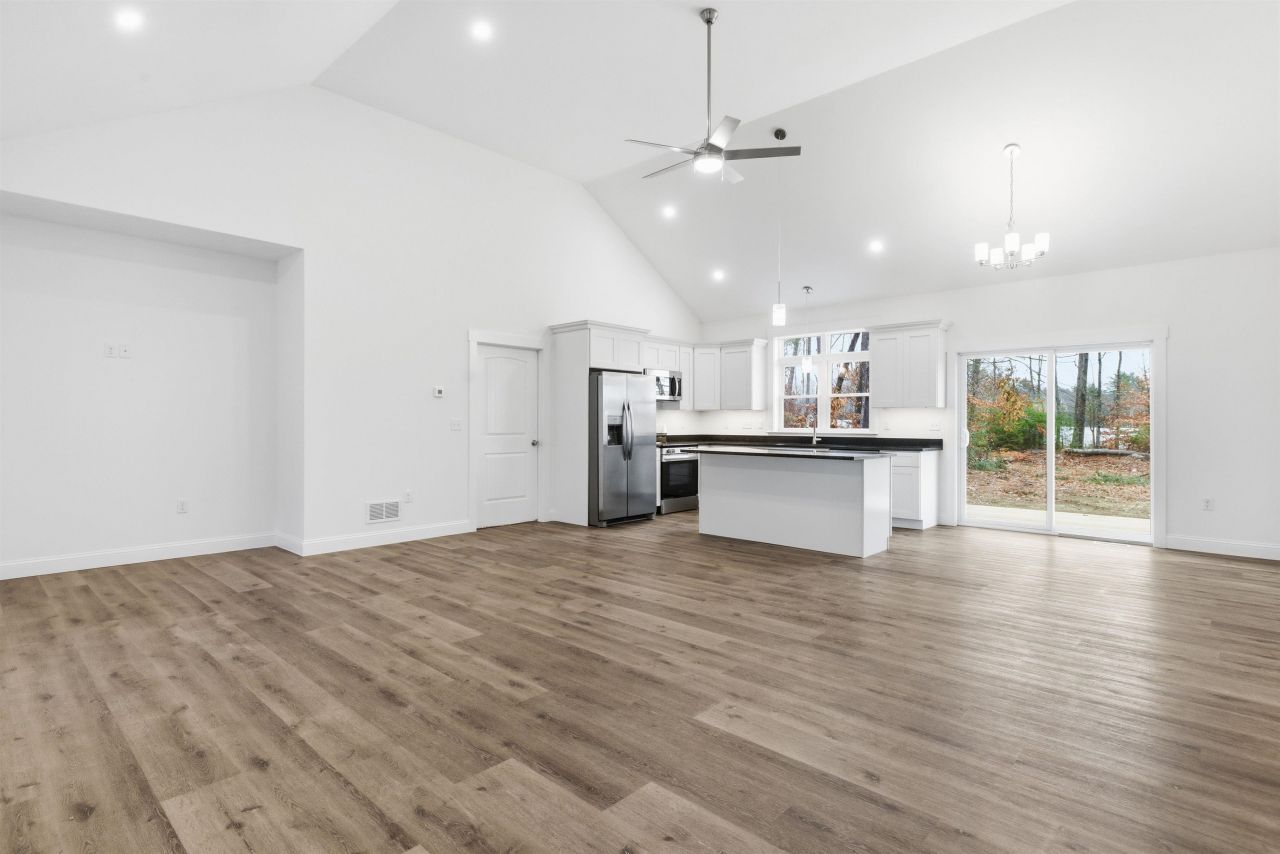 BRAND NEW RANCH READY AND AVAILABLE TO MOVE IN BEFORE THE HOLIDAYS!!! Beautiful three bedroom, one 3/4 and one full bath Ranch on .59 of an acre with city water and city sewer. Open concept kitchen, dining and living room with cathedral ceilings and great natural light throughout. Granite counter tops, shaker style cabinets, soft close doors/drawers and kitchen island. Dining room with glass slider to your back deck overlooking your level back yard. Primary bedroom with 3/4 bath, walk in closet and laundry. Two additional bedrooms and full bath. Two car attached garage with direct entry with storage space or bonus room above. Basement is a crawl space but can be used for storage, if needed, poured concrete walls and floor. Forced hot air heat with AC is available at an additional cost (upgrade). This home has a desirable floor plan. Front Farmer's porch and the perfect amount of land on a level lot, great for entertaining, gardening or just to simply enjoy without yard work becoming a burden. Great location, short distance to I93 and all Lakes Region/Central NH amenities. Don't miss this opportunity!