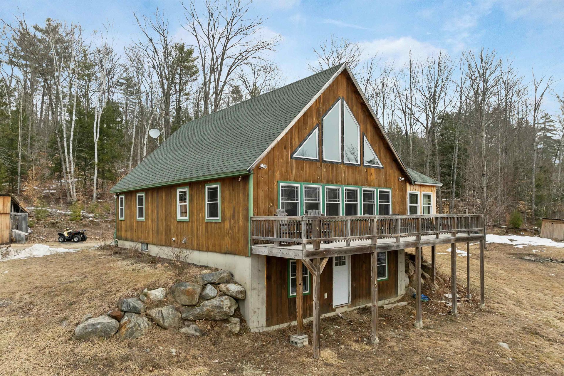 CLASSIC HOME in the White Mountains. Take it all in from your cathedral ceiling living room, with its wall of glass bringing the mountain views in to you. Tucked onto a private location, this property comes with 5 Acres in all which consists of two 2.5 acre side by side lots. For protection, the kids, the parents...a super value in the extra lot! The house has big, open square footage with a large working kitchen complete with breakfast bar and big walk in pantry. It's a full, finished walk-out basement - no unusable space here! A barn, chicken coup and patio plus a lovely big deck just keeps the value stacking up. Near EVERYTHING; skiing, shopping, restaurants, hiking, swimming, 10 minutes from Plymouth, 5 minutes from Exit 28 off I-93. Showings start Saturday, April 11, 12 - 2 pm.