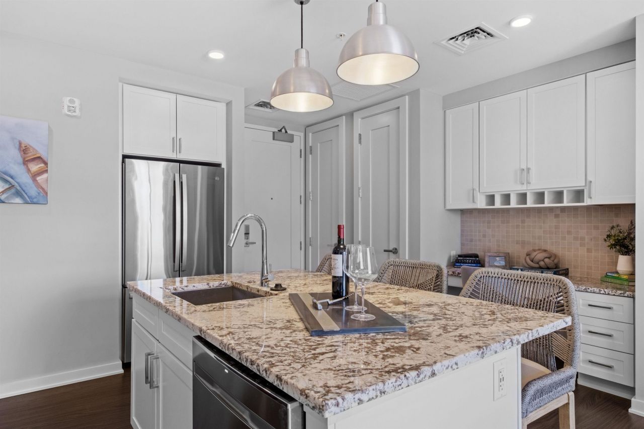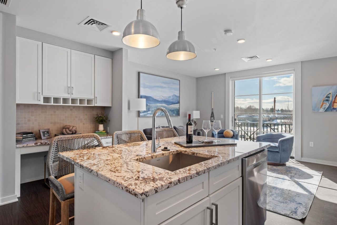 Welcome to 51 Elm Street, Unit 205, offering effortless, one-level living in the heart of the Lakes Region, ideally situated between Lake Winnipesaukee and Lake Opechee. This spacious single-floor, one-bedroom residence spans over 1,000 square feet and delivers a smart, open layout designed for both comfort and convenience. At the center of the home is a beautifully appointed kitchen with a custom island?perfect for entertaining, casual dining, or everyday living. The kitchen flows seamlessly into a bright, expansive living area filled with natural light, creating a space that feels open, modern, and inviting. Thoughtful design allows for easy movement throughout the unit, all on one level?no stairs, no hassle. Designer-grade finishes and premium materials elevate the space, blending timeless style with a fresh, contemporary edge. Every detail has been carefully curated to feel polished yet livable, offering a refined aesthetic that will stand the test of time. Life at 51 Elm is all about low-maintenance, lock-and-leave convenience. Enjoy elevator access, an attached covered garage for year-round ease, and amenities that rival luxury urban living?including a state-of-the-art fitness center and a one-of-a-kind rooftop deck with sweeping views, a rare offering in the Lakes Region. From the dramatic arched entry to the tech-forward features throughout, Unit 205 delivers a no-compromise lifestyle?ideal as a full-time residence, weekend escape, or in-town home base close to dining, shopping, and waterfront attractions.