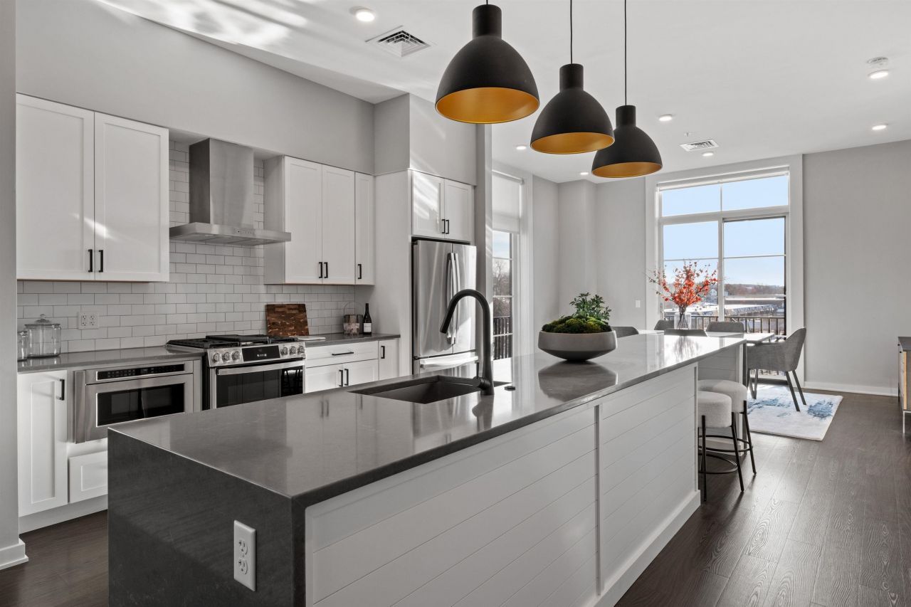 Welcome to 51 Elm Street, Unit 305, where effortless one-level living meets modern design in the heart of the Lakes Region, perfectly situated between Lake Winnipesaukee and Lake Opechee. This thoughtfully designed two-bedroom, single-floor condo spans 762 square feet with a seamless open layout that maximizes both space and natural light. The kitchen, centered around a striking waterfall island, flows naturally into a bright and inviting living area?perfect for entertaining, relaxing, or enjoying everyday life. Designer-grade finishes and premium materials throughout give the space a polished, contemporary feel that's both stylish and low-maintenance, ideal for a lock-and-leave lifestyle. Residents enjoy unmatched convenience with elevator access, attached covered parking, and no exterior upkeep to worry about. Building amenities include a state-of-the-art fitness center and a one-of-a-kind rooftop deck with sweeping views?an exclusive feature in the Lakes Region. From the dramatic arched entry to the tech-forward features throughout, Unit 305 delivers modern, maintenance-free living on one level, making it an ideal full-time residence, weekend retreat, or in-town home just steps from dining, shopping, and waterfront recreation.