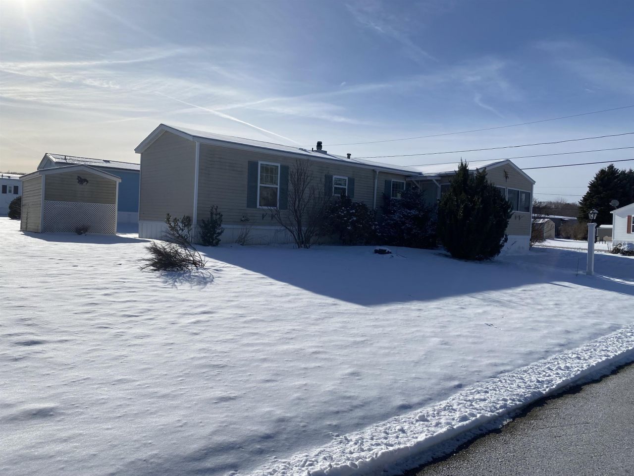 STAY COZY AND WARM IN FRONT OF YOUR PROPANE GAS FIREPLACE, WHILE ENJOYING YOUR NEW HOME CONSISTING OF 2 BED, 1 1/2 BATHS, EAT IN KITCHEN AND LIVING ROOM (WITH F/P) 3 SEASON ROOM ON FRONT OF HOME, LARGE PRIVATE DECK IN REAR WITH A RETRACTABLE AWNING., HOME HAS GOOD STORAGE SPACE/CLOSETS AS WELL AS A SHED...OWNER REPLACED ROOF 4 YRS AGO. AC 5 YEARS AGO FURNACE 14 YEARS WATER HEATER 1 YEAR AGO, 55 AND OVER PARK, 2 PARKING SPACES,,, HOME IS AN ESTATE AND IS BEING SOLD AS IS AND AS SEEN. This is a 55 plus community with a 2 person limit. No dogs, indoor cats welcome..